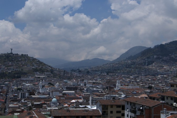 The next day saw us working out the hard way that it was a national holiday. A museum we wanted to visit, the guayasamin, (I hope that I am spelling this correctly) was closed. Though we were later informed by the taxi driver that the government often shuts it down for no reason. We were persuaded to take the same driver to another monument on the other side of the valley, with yet another spectacular view of Quito. This is, apparently, the largest aluminum statue in the world. Kind of a mini statue of liberty.