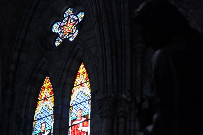 Our first stop was the basilica del voto Nacional, which, despite its magnificence, is falling apart. Quite frankly, a tour through the place betrays a crumbling array of towers and walls and missing stained glass panes. It’s beautiful, but not very well preserved. The amazing part though, is the perilous climb to the top of the tower, from which you get an awesome view of Quito from above. That is, if you can stomach the climb.